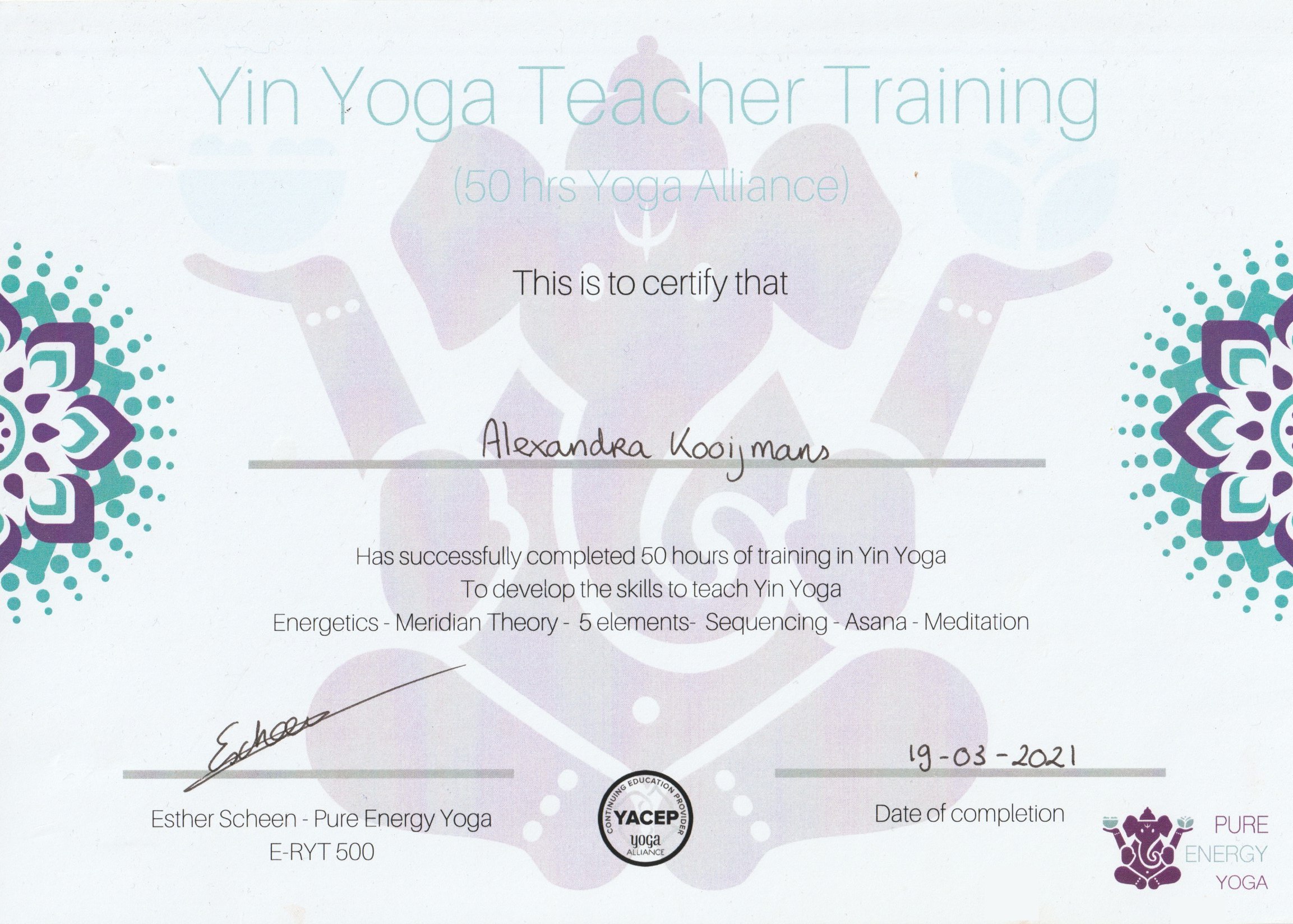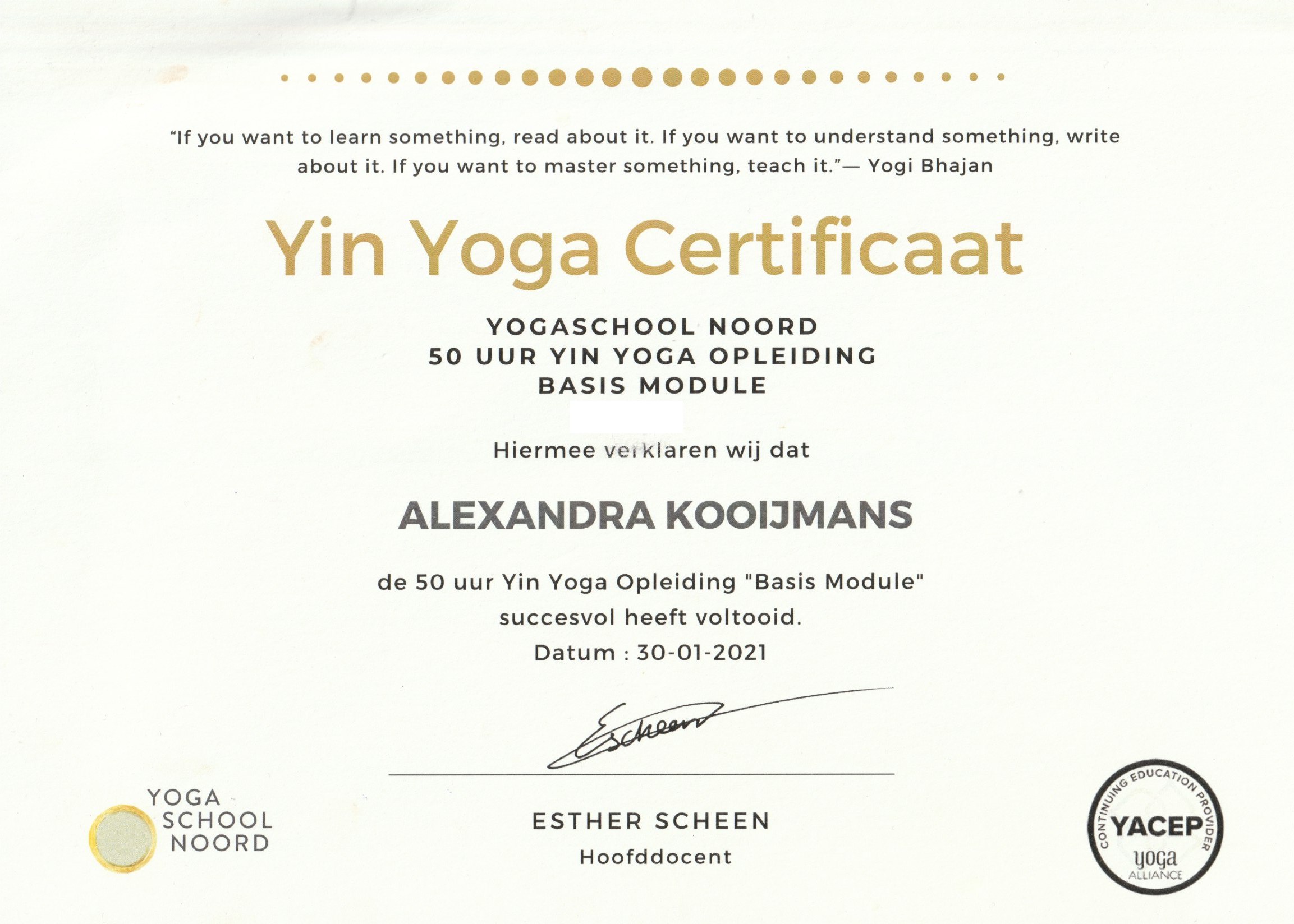 Ondertussen ontwikkel ik me nog steeds met veel plezier door diverse opleidingen te volgen op het gebied van coaching, ademwerk, meditatie en mindfulness. Inmiddels heb ik ook meerdere intensive teacher trainingen tot yin yoga docent afgerond. Hierin geef ik inmiddels met veel plezier lessen en dit gebruik ik desgewenst als aanvulling in mijn sessies.